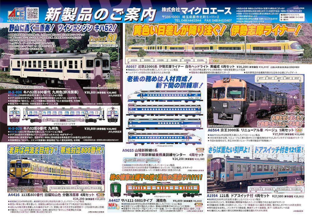 新製品 HO マイクロエース H-5-026 HOゲージ キハ52形100番代 九州色(非冷房車)