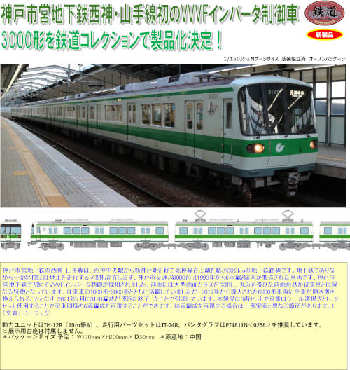 新製品 N TOMIX 332619 鉄コレ神戸市営地下鉄 西神・山手線3000形 3両セット