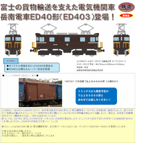 新製品 N TOMIX 340430 鉄コレ岳南電車ED40形(ED403)